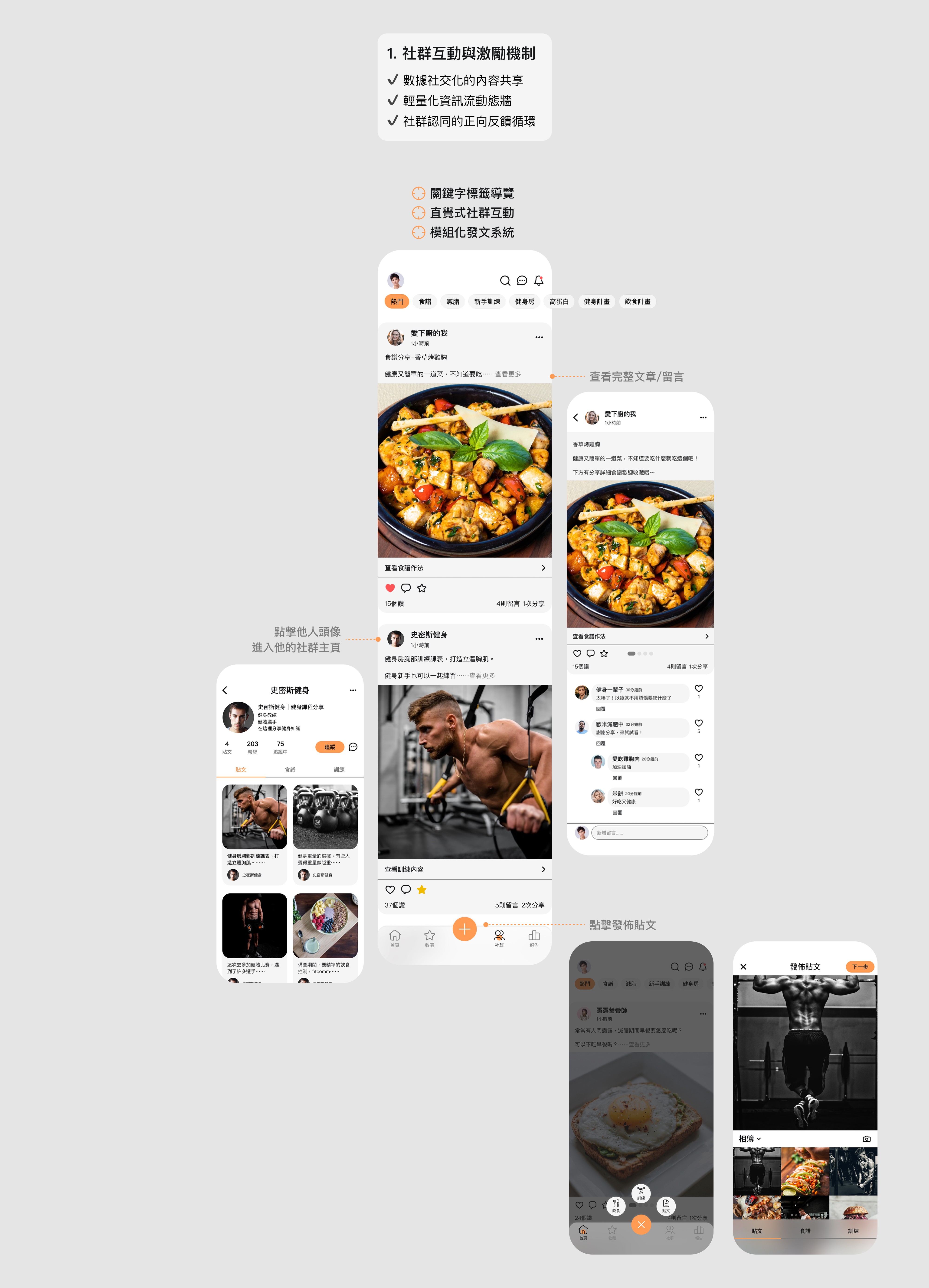 考量健身是長期的行為轉化,透過社群互動打破單向苦練的封閉感。藉由建立歸屬感,將個人努力轉化為持續的社群認同與自我動力。